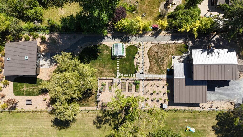 We were hired for a full-site overhaul that combined residential construction with large-scale landscape design and infrastructure work. The project began with the removal of an old garage and art studio, followed by the design and construction of a new ADU and carport. Alongside this, we replaced the roof on the main house, handled all required building permits, and addressed extensive drainage needs across the site.