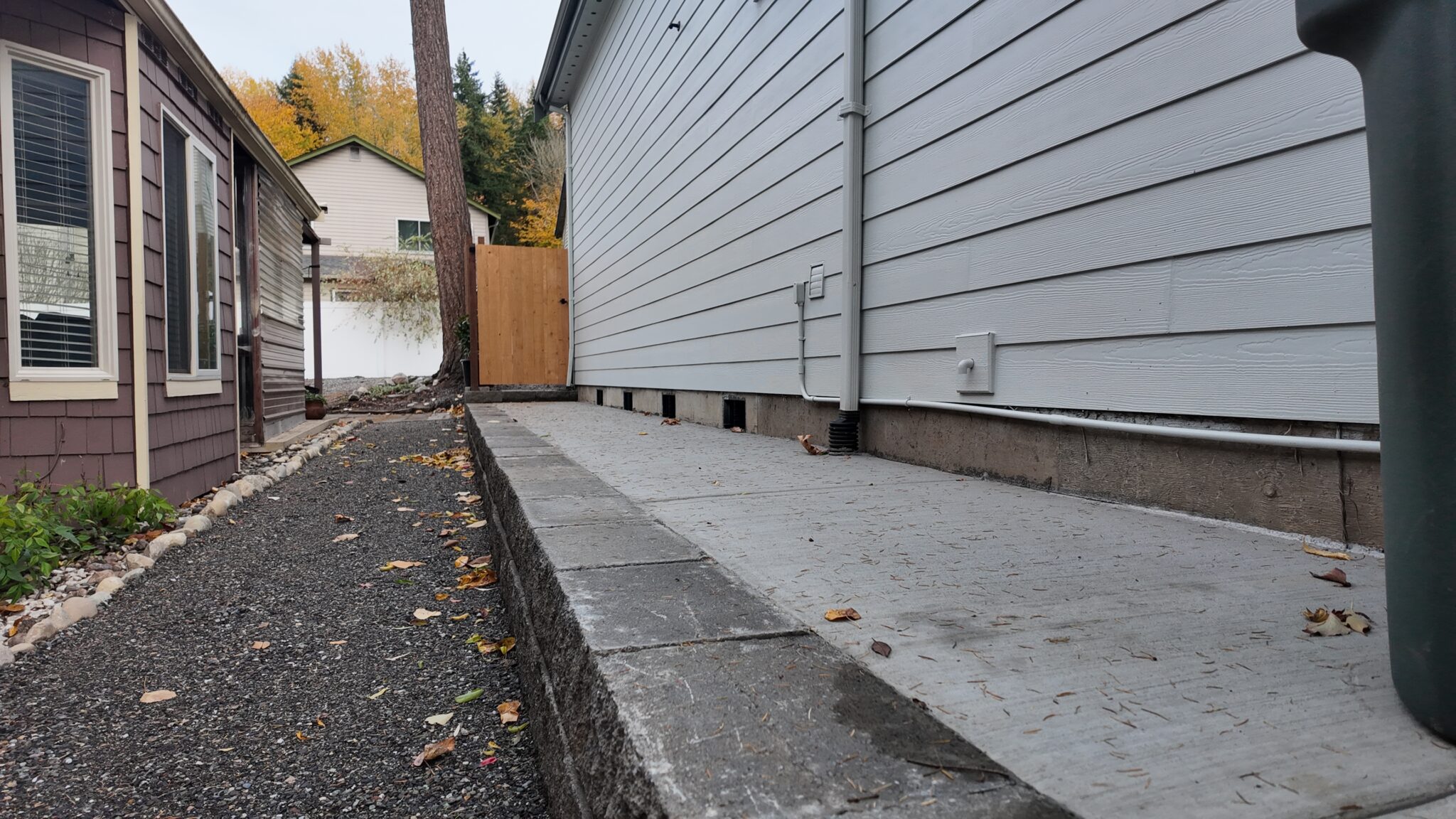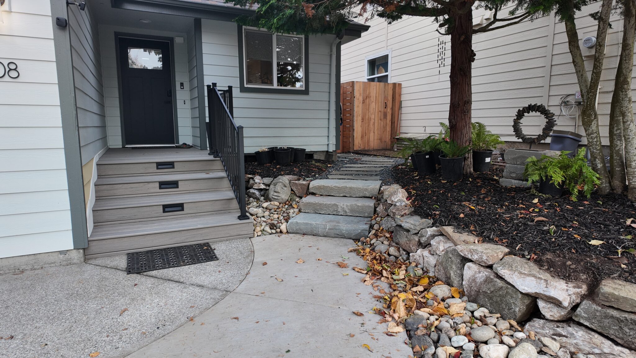 Work also extended to the front of the home, where a new concrete walkway and expanded driveway improve function and curb appeal.