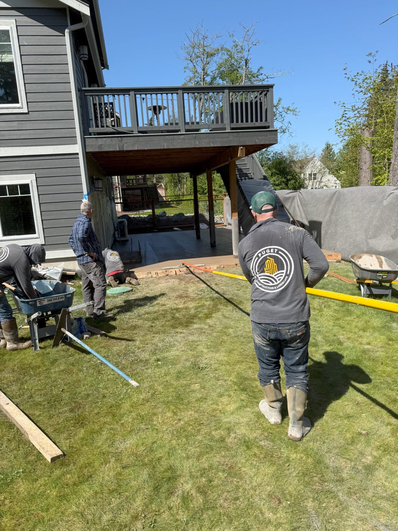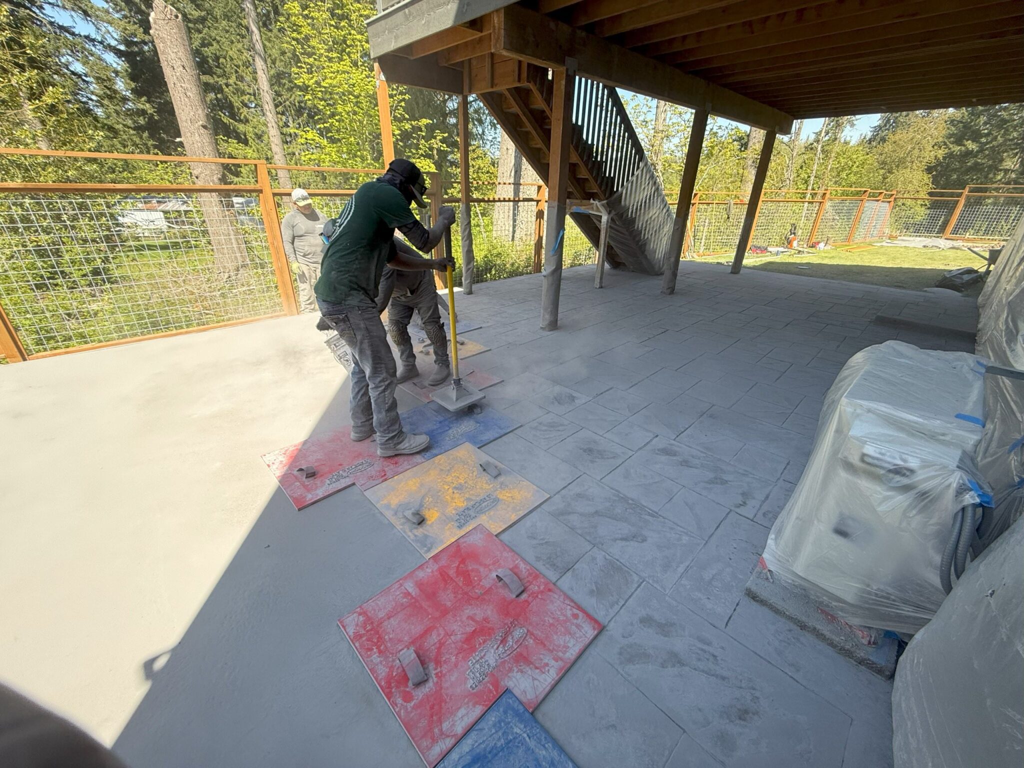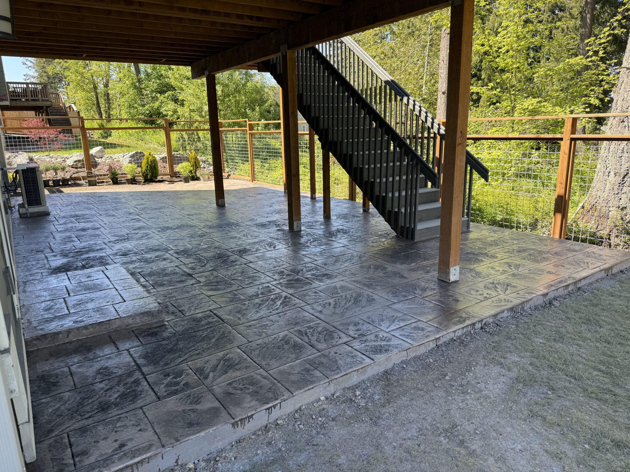 We installed a stamped concrete patio using the Grand Ashlar Slate pattern—one of the most popular choices for clients seeking a natural stone look with clean, geometric lines.