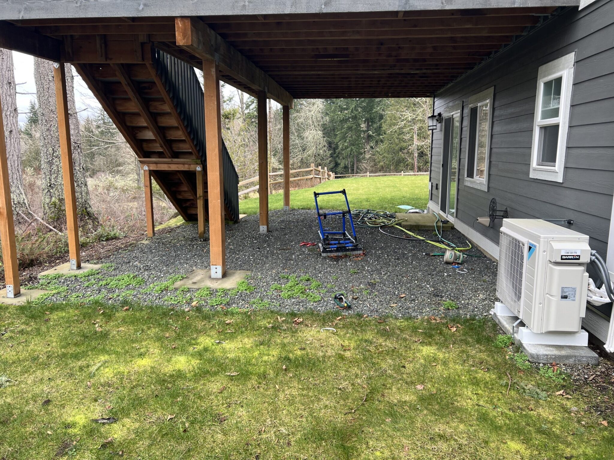 This project started with a familiar challenge: a gravel-covered under-deck space that collected clutter but offered no real function. The homeowner wanted something more usable, polished, and easy to maintain without sacrificing the natural feel of their wooded backyard.