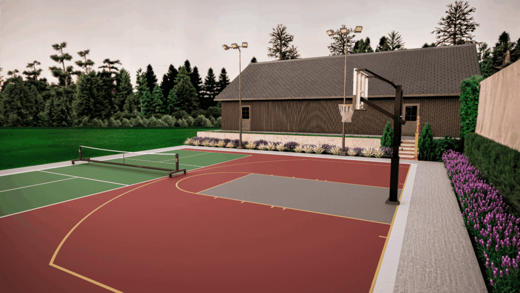 Hoops, nets, lighting, fencing, ball-containment, and color graphics are all key components to make your court stand out.